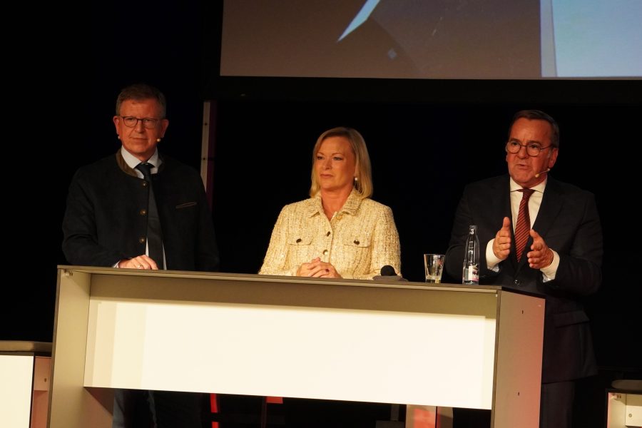 Der Bundesminister betonte in Gespräch mit Armin Maus, der die Veranstaltung moderierte, dass auch in der Vergangenheit, nur aus der Position der Stärke heraus Verhandlungen sinnvoll waren und der Frieden gesichert werden konnte. Und genau das war der Titel der Veranstaltung. „Den Frieden sichern“. Friedenssicherung sei bereits in Zeiten Willy Brandts und seiner Entspannungspolitik nur möglich gewesen, weil starke und einsatzbereite Kräfte den Boden dafür ebneten. Sein Ziel sei, dass eben keine Soldatin und kein Soldat je in den Einsatz zur Landesverteidigung müsse.